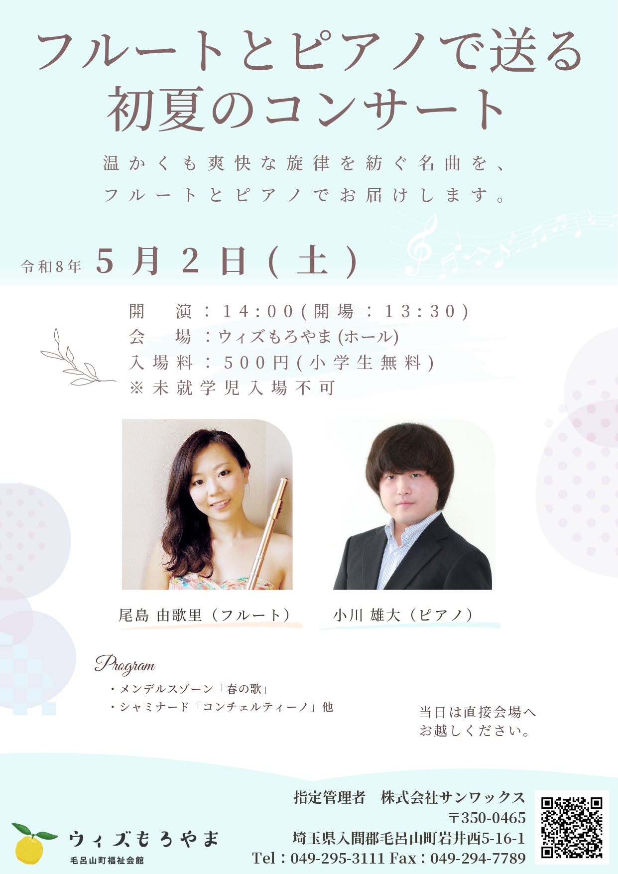 5月2日(土)『フルートとピアノで送る初夏のコンサート』開催します♪