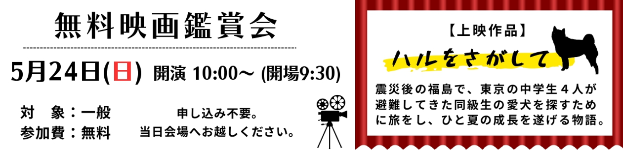 5月24日(日)ウィズもろやまシネマ『無料映画上映会「ハルをさがして」』のお知らせ